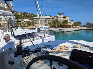 Last month I took my wife and six friends on a bareboat holiday in the British Virgin Islands. It was our second trip to the BVIs. We decided to use a charter broker, rather than contacting a number of different companies directly. The Virgin Island Sailing company located a boat that worked for us and they negotiated the best price. The yacht we chose was a Lagoon 46 sailing catamaran with twin diesel engines. This boat offered all the amenities of a true luxury yacht. Air conditioning, water maker, full galley, multiple appliances, indoor and on deck tables for eight, four comfortable staterooms, and four heads, each with a hot water shower. The helm included the latest electronics and even an autopilot. Being a catamaran, the twin engines were far enough apart that you could rotate the yacht within its own length, making docking a breeze.