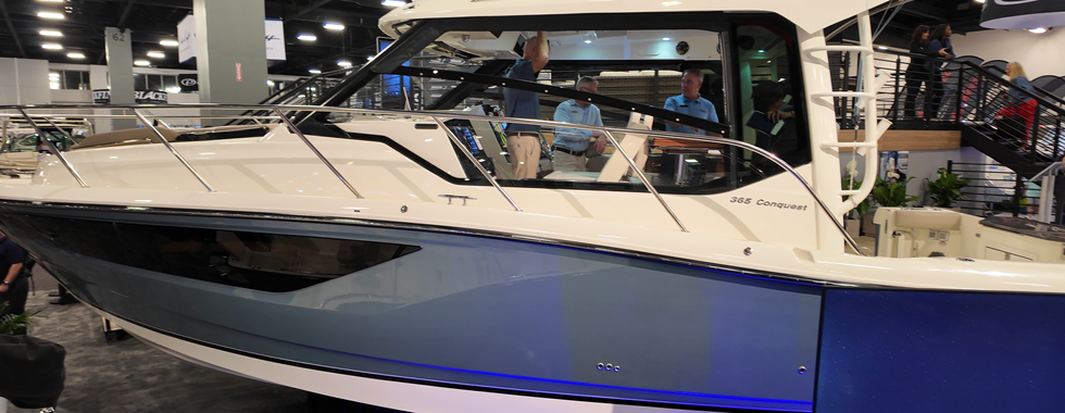 The longstanding Edgewater, Florida boatbuilder had major local support, not to mention a large media gathering, as they gave attendees a thorough walkthrough of the all-new 365 Conquest.